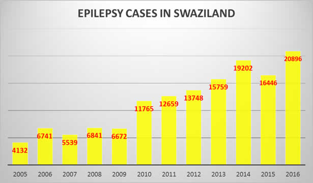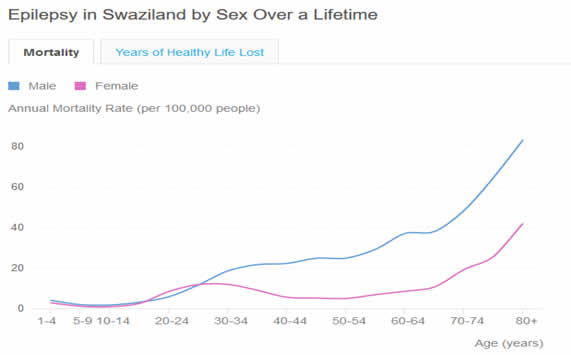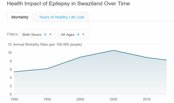 Epilepsy is a condition that has not received much attention in the past, but recent data has demonstrated without question, that this neurological condition is increasing at an alarming rate. Eswatini is not immune to this condition as the latest data analysis show that 11.22 per 1000 people in the country live with epilepsy. According to the Global Burden of Disease (GBD) report (2013), the annual mortality rate per 100,000 people from epilepsy in Eswatini has increased by 52.2% since 1990, an average of 2.3% a year. In 2013, the annual mortality rate was 8.3 per 100, 000 people. The annual years of healthy life lost per 100,000 people from epilepsy in Eswatini has increased by 44.5% since 1990, an average of 1.9% a year.